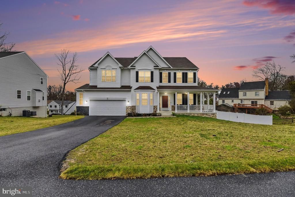 Welcome to 9214 Jordan River Rd, a stunning colonial residence offering nearly 6,000 square feet of beautifully designed living space, nestled within the exclusive Dalton Springs community—an intimate enclave of fewer than 10 homes in Columbia. From the moment you arrive, the expansive covered wraparound front porch sets the tone for the elegance found throughout. Inside, a grand foyer adorned with crystal chandeliers and rich hardwood flooring welcomes you, with hardwood extending seamlessly across the main level, staircase, upper hallway, and into the primary suite. Designed for both everyday living and sophisticated entertaining, the home features a dramatic two-story family room with a four-foot extension, open to the upper-level catwalk and complemented by a beautifully crafted wood staircase. The gourmet kitchen serves as the heart of the home, showcasing Cambria Portrush quartz countertops, an oversized extended island, walk-in pantry, and a sun-filled morning room. Expansive windows fill the space with natural light and are enhanced by remote and app-controlled blinds, along with recessed lighting and ceiling fans throughout. A rare and highly desirable main-level secondary primary suite provides exceptional flexibility, complete with a private full bath and extended living space—ideal for multi-generational living or guest accommodations. Upstairs, the luxurious primary suite offers a spacious retreat with extended square footage, a large walk-in closet, and a spa-inspired en suite bath featuring a walk-in shower and separate soaking tub. Three additional generously sized bedrooms, a full hall bath, and a convenient upper-level laundry room with advanced LG washer and dryer complete the upper level. The fully finished walkout lower level expands the living space even further, offering a sixth bedroom, full bath, kitchenette, and additional storage—perfect for guests, recreation, or private living quarters. Step outside to a thoughtfully designed backyard featuring professional hardscaping and landscaping, fully enclosed by a six-foot privacy fence—creating a private outdoor oasis ideal for relaxing or entertaining. Additional highlights include an extended garage with a four-foot expansion and durable epoxy flooring, combining functionality with style. Ideally located in one of Columbia’s most desirable settings, this exceptional home offers the perfect balance of modern luxury, thoughtful design, and private community living. Please note: Property line extends to top of road at stop sign and mailboxes